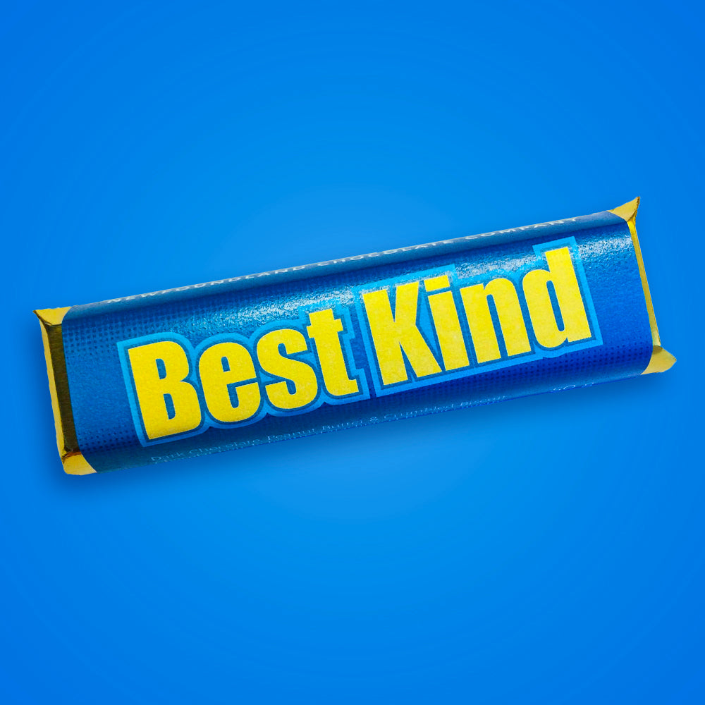 Our rich dark chocolate Best Kind Bar features peanut butter and crumbled biscuit.