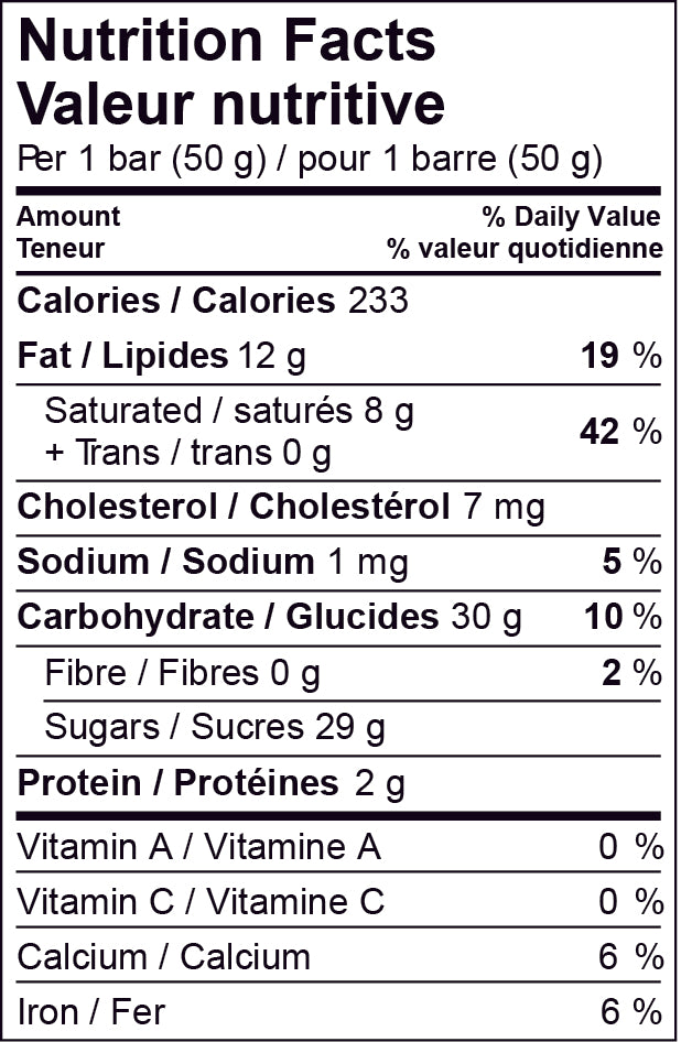 Smooth milk chocolate with creamy caramel and Newfoundland sea salt.