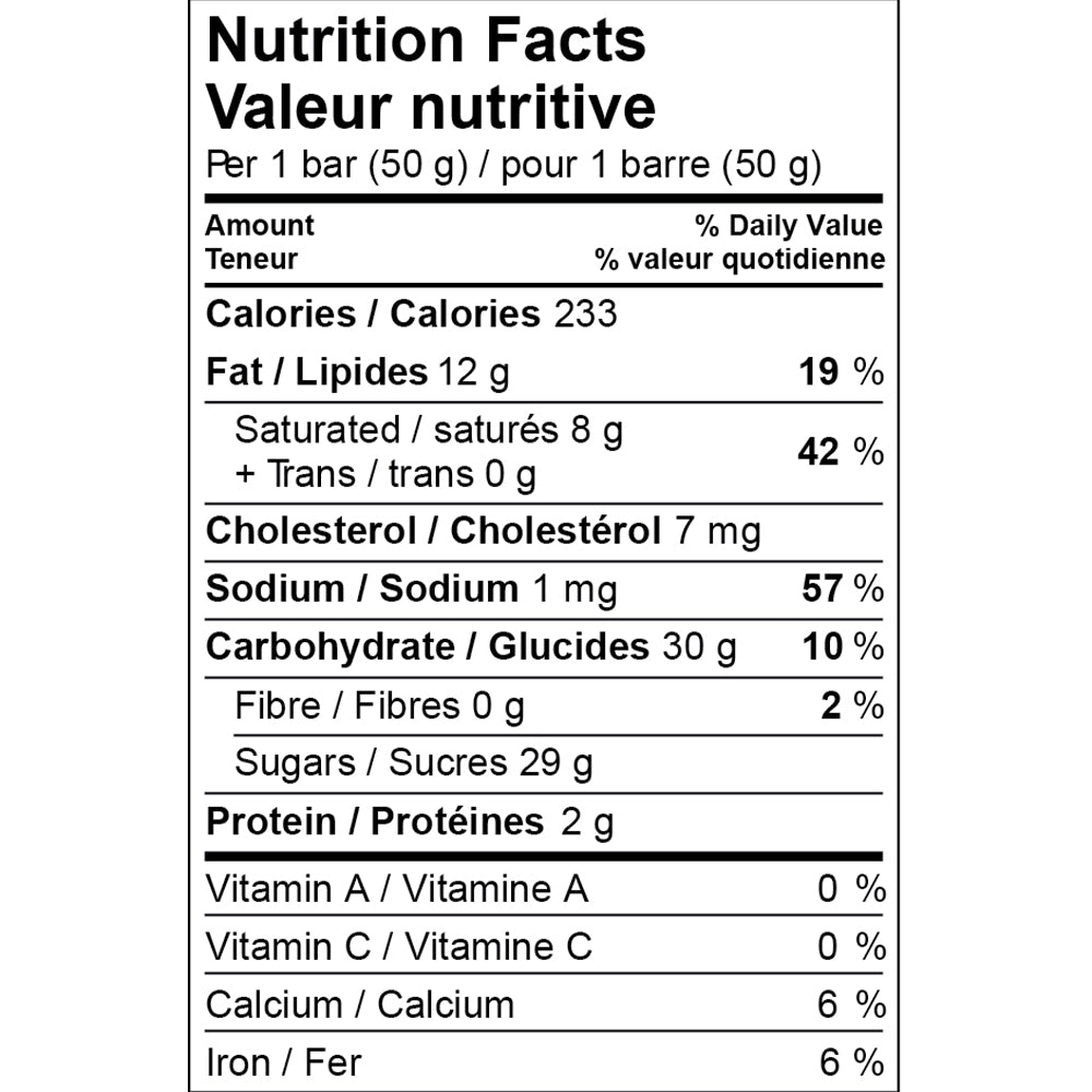 Smooth milk chocolate with creamy caramel and Newfoundland sea salt.