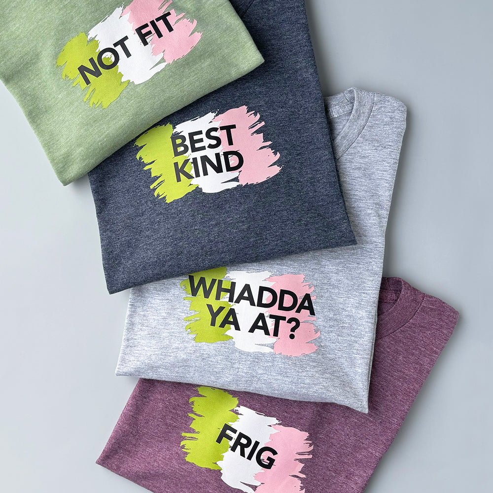 Say it best, with our NL Sayings T-Shirts!! Available in adult unisex sizes S, M, L, XL & 2XL. Not Fit (Sage Green), Best Kind (Heather Navy), Whadda ya at? (Sport Grey) & Frig (Heather Maroon). **Very minimal stock left, please check with a local store or contact info@newfoundlandchocolatecompany.com to inquire about saying/size. More shirts arriving soon. Colours/Sayings are not interchangeable.